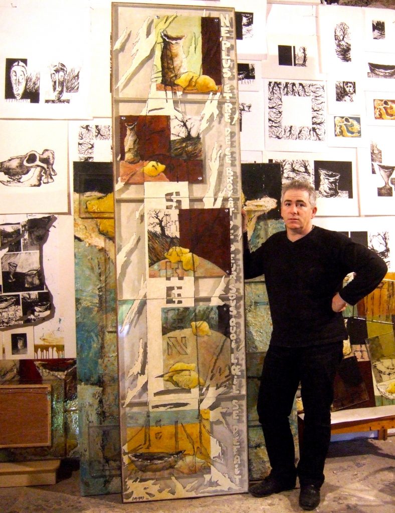 Mais encore faudrait-il ajouter qu’un tel acte, parce qu’il implique la production d’images, répond à un irrépressible besoin de montrer, de dénoncer, de témoigner et d’établir une relation singulière avec autrui ; acte qui nécessite de s’ouvrir intensément au perçu, à l’éprouver… et d’en rendre compte par les moyens sensibles de la couleur, de la matière, de la forme, de l’image, etc… Bref, peindre c’est donner à voir ce qui se refuse à la vue ordinaire, c’est faire poindre sur la toile ce qui s’invente lentement dans la durée de la praxis ou qui jaillit dans l’instant de production. C’est faire remonter à la conscience ce qui, dans l’agir et l’éprouver, relève de la fulgurance et de l’immanence du vivre.