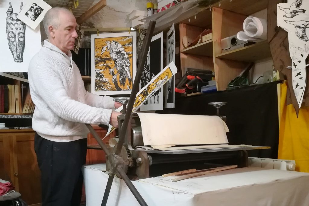 Pour le graveur Lionel Balard, l’image ouvre inexorablement à l’expérience artistique partagée… Si la gravure existe en sa qualité d’estampe, pleine de son sens et totalement autonome, elle est toujours, chez lui, très intimement liée aux diverses activités et catégories artistiques qui le passionnent… Bref, la gravure est au cœur de sa démarche artistique et se lie de façon intrinsèque à la poésie, la peinture, la sculpture, la photographie ou la musique… Elle n’est pas seulement une image accomplie se donnant comme le lieu improbable d’une satisfaction esthétique, elle participe d’un projet artistique plus vaste : celui de faire émerger de l’acte créateur un nouvel objet graphique participant de la relation à l’autre, plus apte à investir le sentiment humain, à favoriser l’ouverture sur le monde actuel.