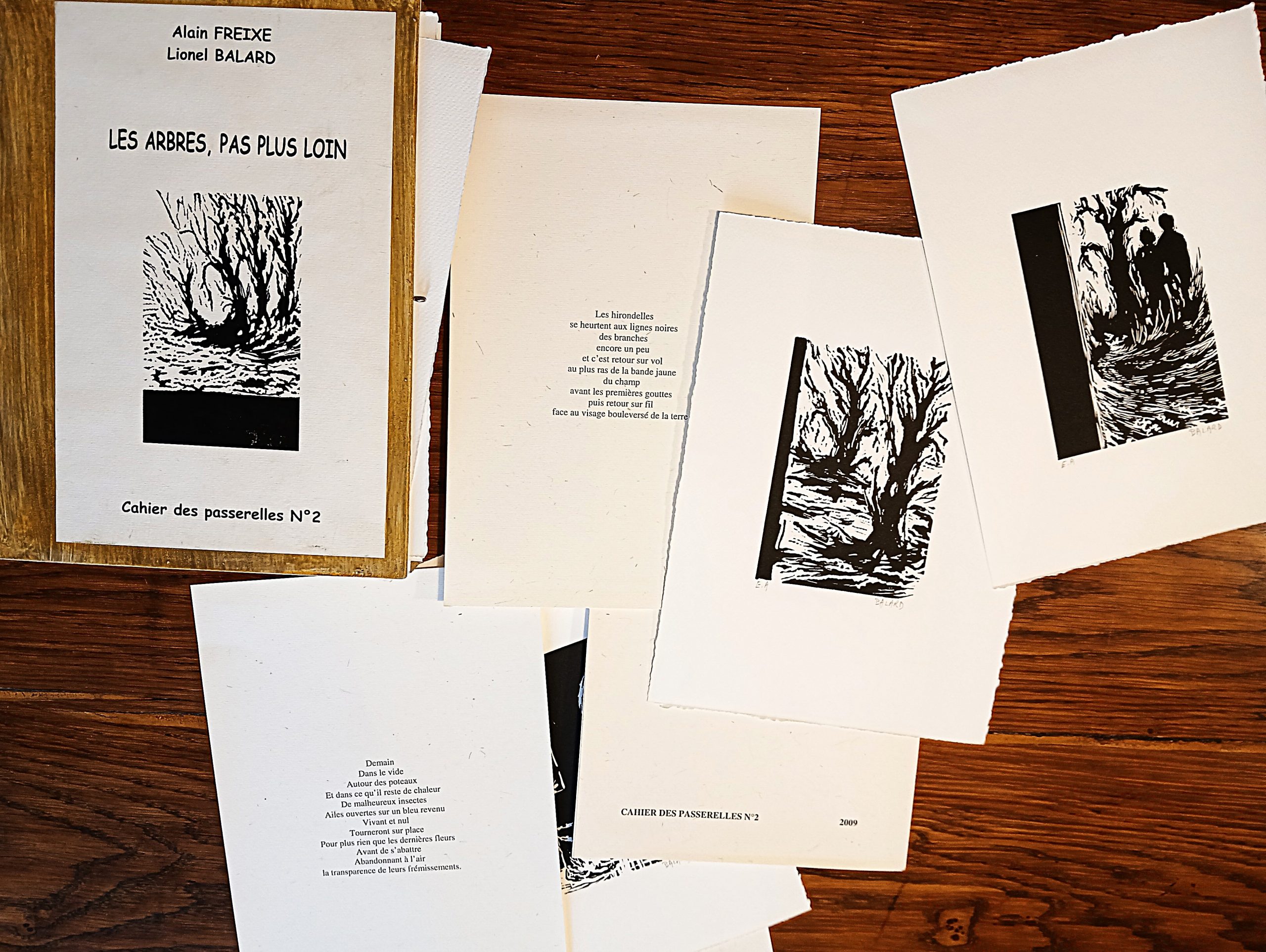 « Il n’est pas commun de nos jours, en ce siècle de prétendus spécialistes, qu’une seule personne rassemble à elle-seule plusieurs créateurs. C’est le cas pourtant, sous une double identité, pour Lionel Balard, graveur et plasticien et Léon Bralda, éditeur et poète. Après avoir été à l’origine, en 2005, de l’association « Les Passerelles » afin de promouvoir de nombreuses formes artistiques, il créa fin 2008 une collection poétique éponyme avec deux premiers cahiers composés par lui-même et par Alain Freixe. Par la suite, les parutions suivront de façon irrégulière dans le temps mais avec toujours une superbe exigence quant à la qualité des réalisations : beau papier, belle impression typo et gravures soignées. Avec un tirage limité à 50 exemplaires et un soin méticuleux pris à proposer des recueils de qualité, Léon Bralda s’inscrit dans la lignée des éditeurs patients tels que le furent par exemple Jean Vodaine ou Jean Le Mauve ou comme encore actuellement Jacques Brémond. » Georges Cathalo